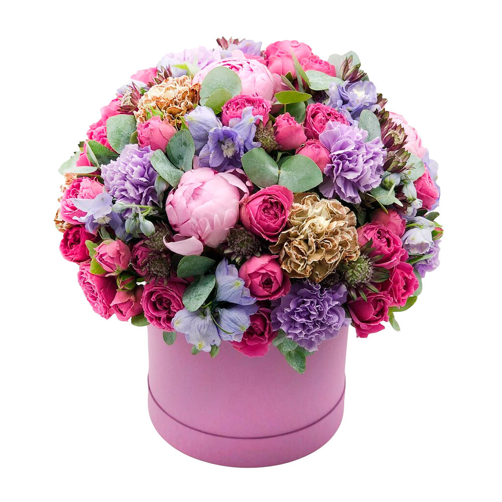- Цветы в коробке «Розовая фантазия» - с круглосуточной бесплатной доставкой в Кулсарах.